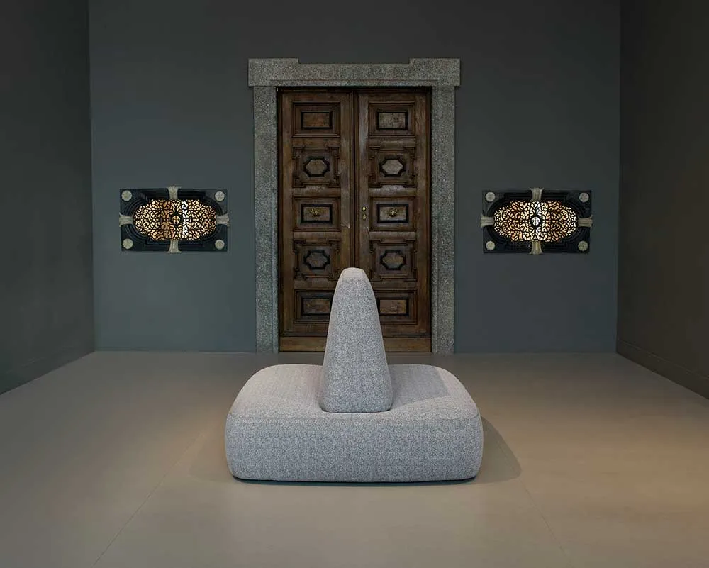 Cilindro è un divano fonoassorbente con struttura in materiale ligneo e copertura composta da imbottitura interna in tecnopolimero fonoassorbente, rivestito esternamente in tessuto Snowsound-Fiber Textiles 3 Melange o 8 Bouclè. “Una struttura geometrica, sintesi di un incastro di volumi e forme essenziali. Intersezioni analitiche di punti, linee e superfici, iscritte in una seduta acustica di ispirazione modernista.” (Claudio Bellini)